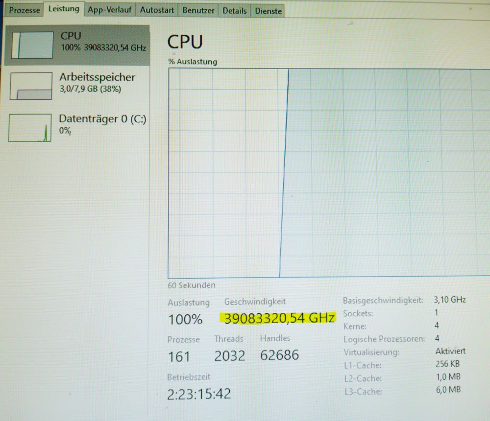 Es ist ein i5 4. Generation. Der PC arbeitet, hat aber diverse Probleme in Punkto Programme öffnen. Ansonsten macht er sein Ding. Auf die Anzeige sind wir eher durch Zufall gestoßen, als wir nach der